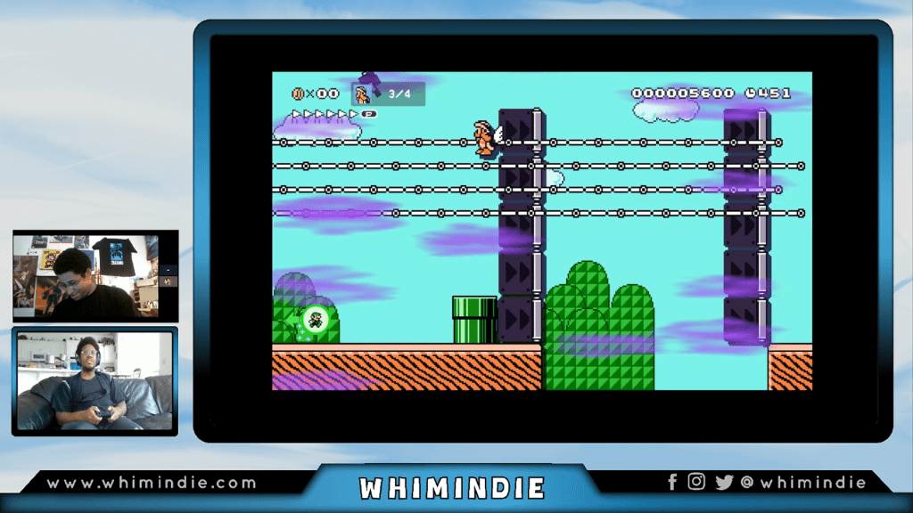 The Mario Maker version of this mission has you performing the entire mission on foot as there’s no good vehicle to ride in, and your only weapon of choice is a fireball, which you’ll lose if you get struck by a hammer. There’s also a clear requirement where you have to defeat all four Hammer Bros. In addition, the roles of Mario and Luigi were swapped between the two, with Mizore playing Mario and Grover playing Luigi.