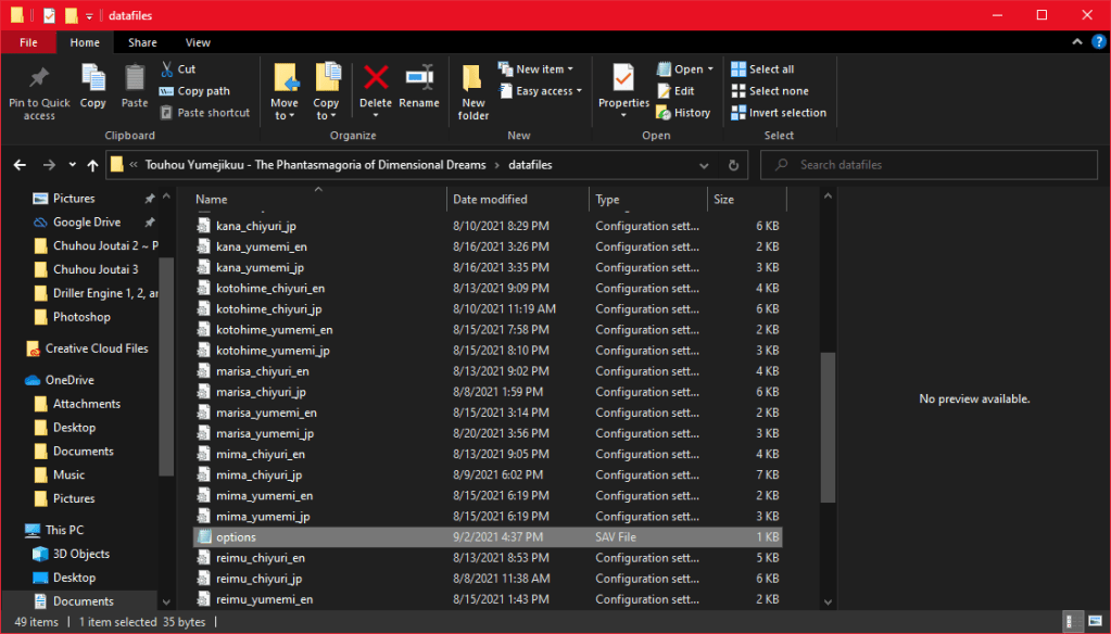 まず、ゲームをダウンロードしたルートフォルダに行ってください。そこで 「options.sav 」ファイルが見えるまで下にスクロールしてください。