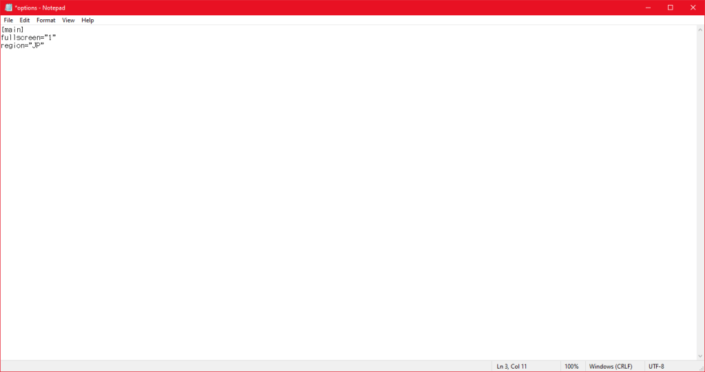 次に、「options.sav 」ファイルを開けて、「region」キーで「JP」に設定してください。ファイルを保存することを忘れないでください。