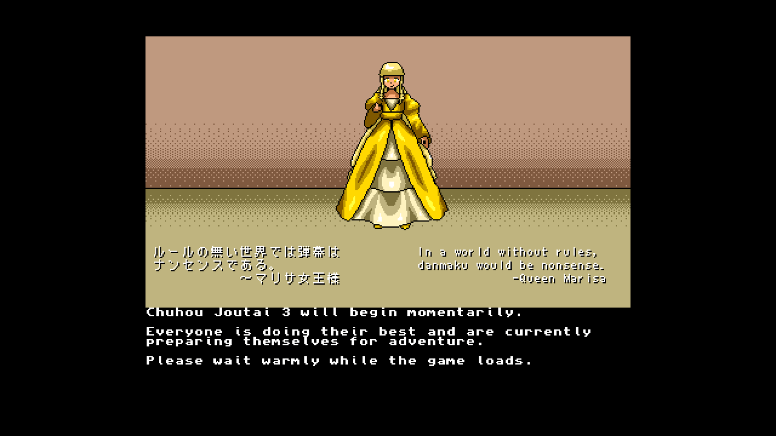 Development on the final Touhou Project NES demake, Mystic Square, will begin in April. While the graphics and engine for Chuhou Joutai 3 are being prepared and hope that the first four stages will be done in time when that game begins full development. To save time, the same engine from the Lotus Land Story NES Demake will be reused.