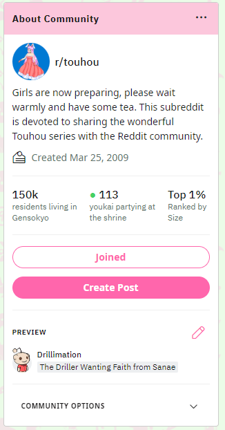 Drillimation Will No Longer Produce Entries for the Touhou Subreddit Banner Contests
